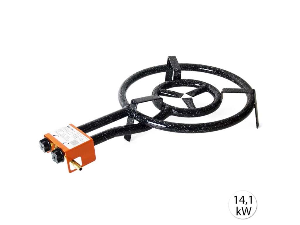 Plynový horák k propán-butánovej bombe Garcima vhodný na cesty, rýchla príprava, s nožičkami. 30 mbar. 1025gr/h. Výkon 14,1 kW.