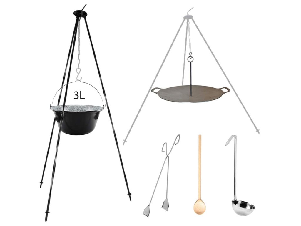 | Obsah sady: | kotlík, varecha, trojnožka, naberačka, grilovacia platňa, grilovacie kliešte |