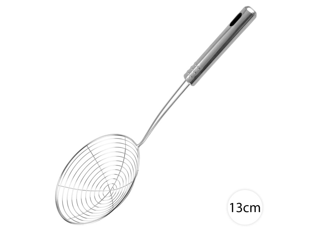Ak hľadáte spoľahlivú penovačku, ktorá uľahčí každodenné varenie, Perfect Home Penovačka, 13cm, je tou pravou voľbou. Táto kuchynská penovačka je skutočným pomocníkom v každej kuchyni - vďaka nej jednoducho scedíte vodu či prebytočný tuk z pokrmov. Je univerzálna a môžete ju použiť aj na nakladanie jedál ako hranolky, makaróny, zeleninu a podobne. Je vyrobená z nerezovej ocele s rukoväťou vybavenou uškom na zavesenie.