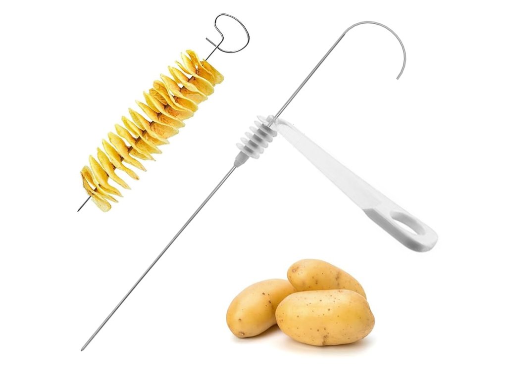 Špirálový krájač na zemiaky je úžasný kuchynský pomocník na prípravu zemiakov, s ktorým vytvoríte dokonalé vyprážané špirály. Vyrobený z kovu s dĺžkou 18 cm, funguje aj na uhorku, cuketu alebo mrkvu.