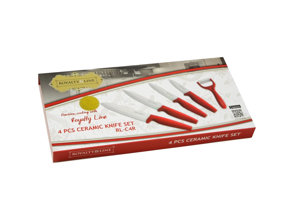Royalty Line RL-C4R 5-dielna súprava nožov s keramickým povrchom a s keramickou škrabkou, 15cm, 13cm, 10cm, 7,5cm, červená