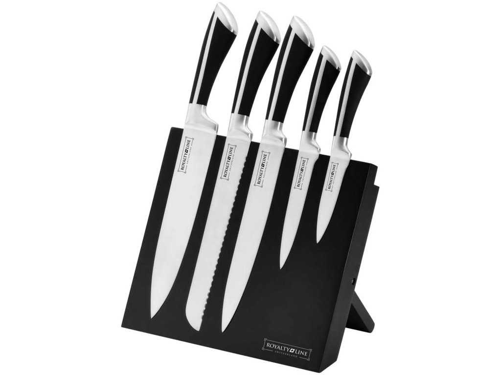 Royalty Line RL-MG5B je dokonalou sadou kuchynských nožov pre modernú kuchyňu. Tieto kuchynské nože sada sú kované z jedného kusu vysoko kvalitnej nehrdzavejúcej ocele, vrátane rukovätí s elegantnými čiernymi plastovými prvkami. Súčasťou je 5 ks nožov a magnetický stojan pre bezpečné skladovanie. Nože skvele padnú do ruky, zaisťujú komfort a presné krájanie – ideálna kuchynská sada nožov pre začiatočníkov aj expertov. Balené v darčekovej krabici, sú výborným tipom na darček. Objednajte si túto výhodnú sadu kuchynských nožov a vylepšite svoje varenie ešte dnes!