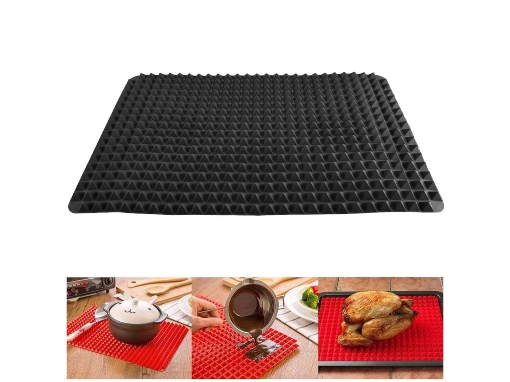 Silikónová podložka na pečenie Perfect Home Pyramid-Pan-28320, ktorú jednoducho umiestnite na pekáč či plech a naukladáte želané suroviny. Špeciálny tvar podložky tvorený 556 silikónovými pyramídkami pre dokonalé prepečenie jedla zo všetkých strán.