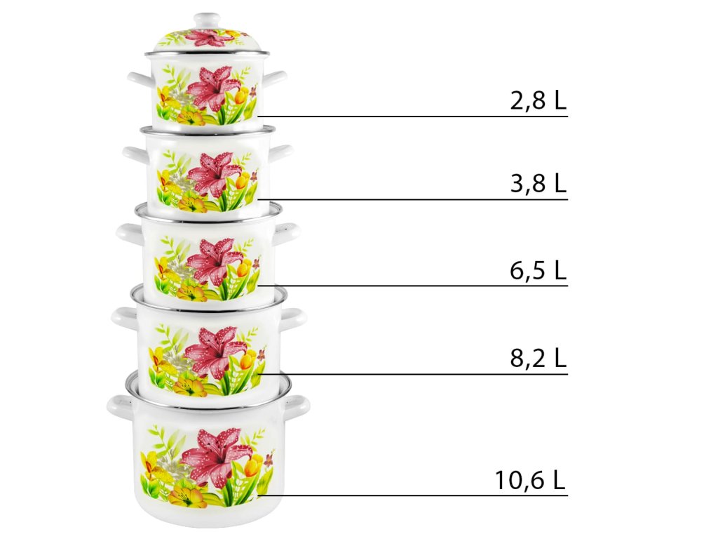 Smaltované hrnce TIDAL TD-9781 obsahuje 5x hrniec + 5x pokrievka. Z kvalitnej nehrdzavejúcej ocele s veľmi odolným smaltovaním. Ľahké používanie, dlhá životnosť a nenáročná údržba.